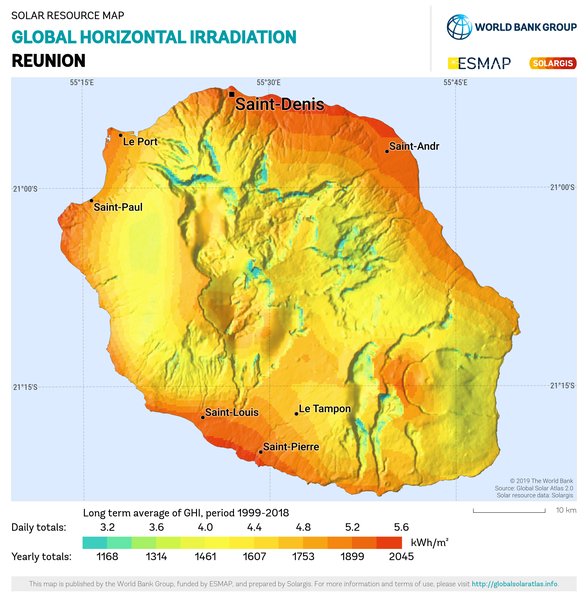 Solar resource maps of Reunion
