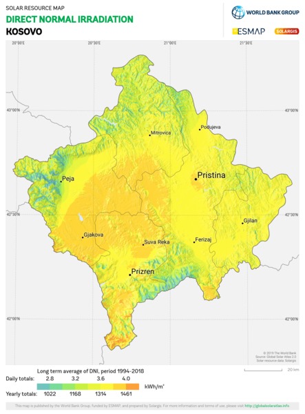 Solar resource maps of Kosovo