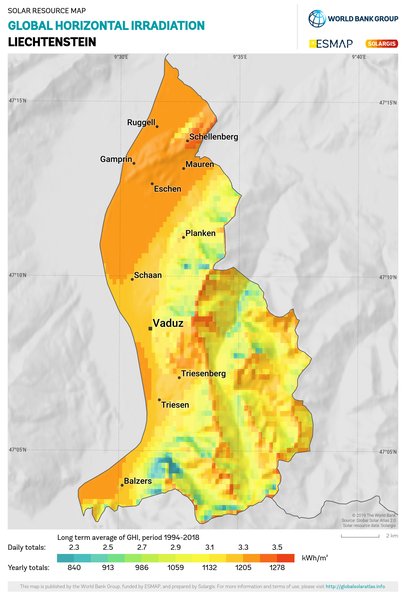 The map and data products on this page are licensed under the Creative Commons Attribution license (CC BY-SA 4.0). You are free to download, share, adapt, use the maps but you must credit the source on the appropriate place as follows: Solar resource map © 2021 Solargis. We also request you to provide a backlink to https://solargis.com website when appropriate.