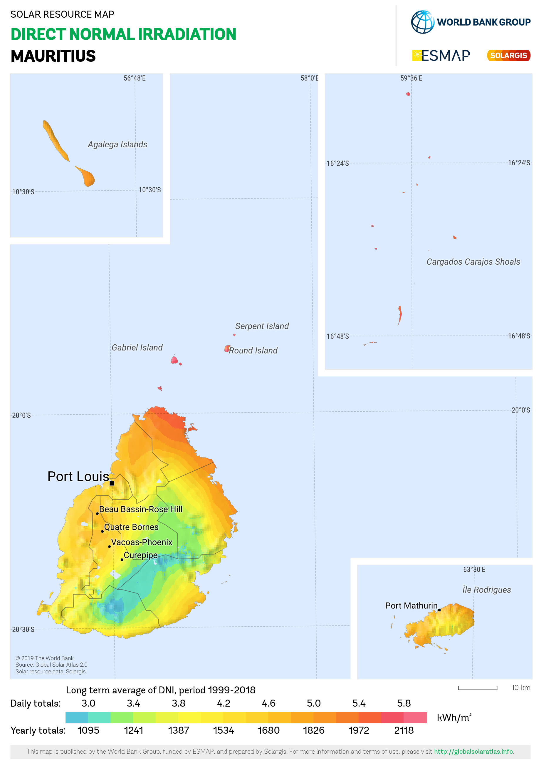 Solar resource maps of Mauritius