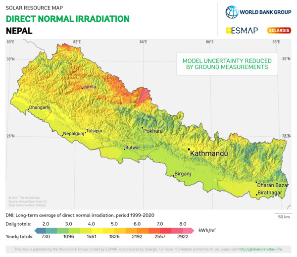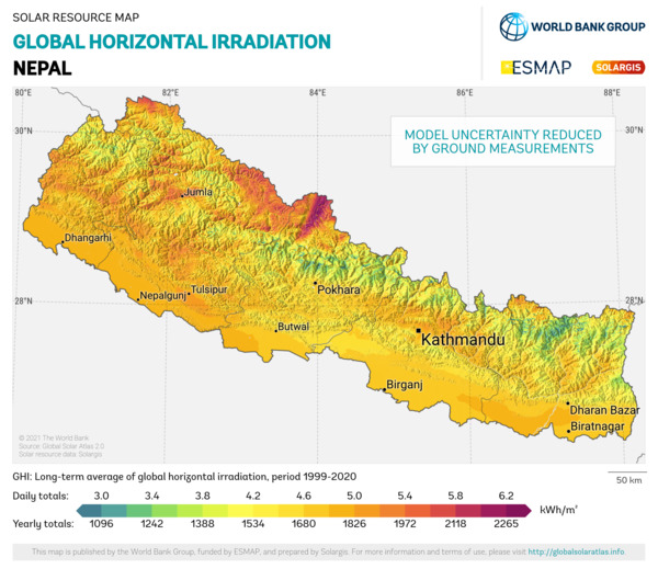 The map and data products on this page are licensed under the Creative Commons Attribution license (CC BY-SA 4.0). You are free to download, share, adapt, use the maps but you must credit the source on the appropriate place as follows: Solar resource map © 2021 Solargis. We also request you to provide a backlink to https://solargis.com website when appropriate.