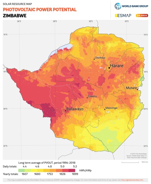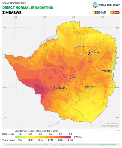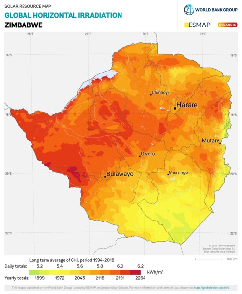 Solar resource maps of Zimbabwe