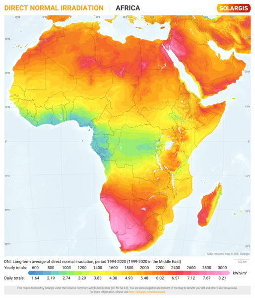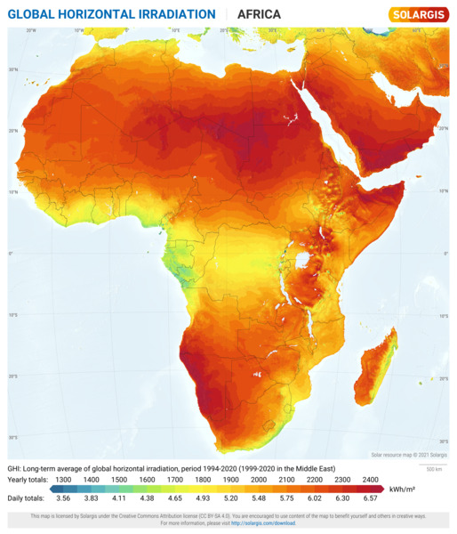 The map and data products on this page are licensed under the Creative Commons Attribution license (CC BY-SA 4.0). You are free to download, share, adapt, use the maps but you must credit the source on the appropriate place as follows: Solar resource map © 2021 Solargis. We also request you to provide a backlink to https://solargis.com website when appropriate.