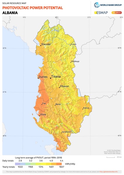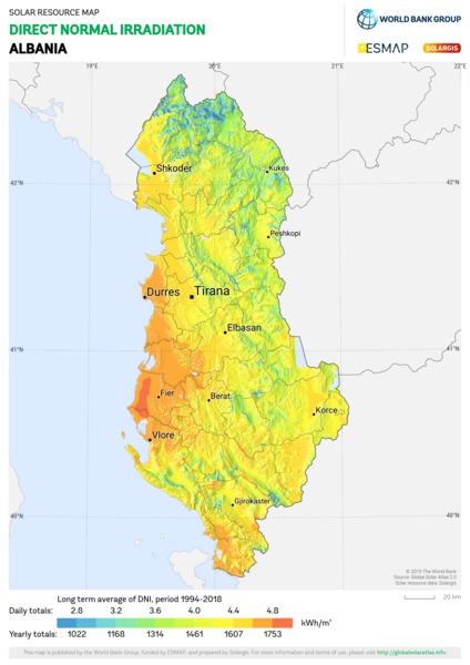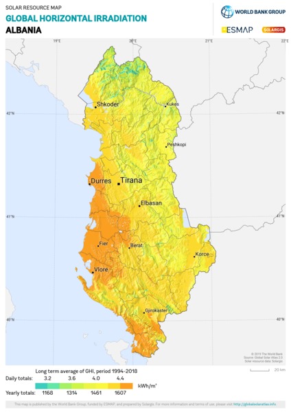 The map and data products on this page are licensed under the Creative Commons Attribution license (CC BY-SA 4.0). You are free to download, share, adapt, use the maps but you must credit the source on the appropriate place as follows: Solar resource map © 2021 Solargis. We also request you to provide a backlink to https://solargis.com website when appropriate.