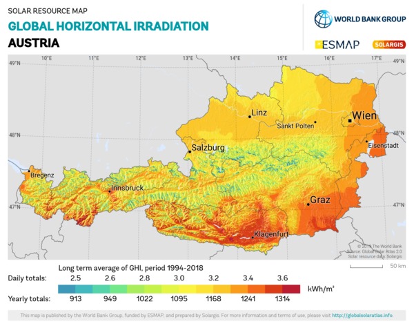 Solar resource maps of Austria