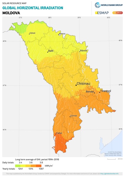 The map and data products on this page are licensed under the Creative Commons Attribution license (CC BY-SA 4.0). You are free to download, share, adapt, use the maps but you must credit the source on the appropriate place as follows: Solar resource map © 2021 Solargis. We also request you to provide a backlink to https://solargis.com website when appropriate.
