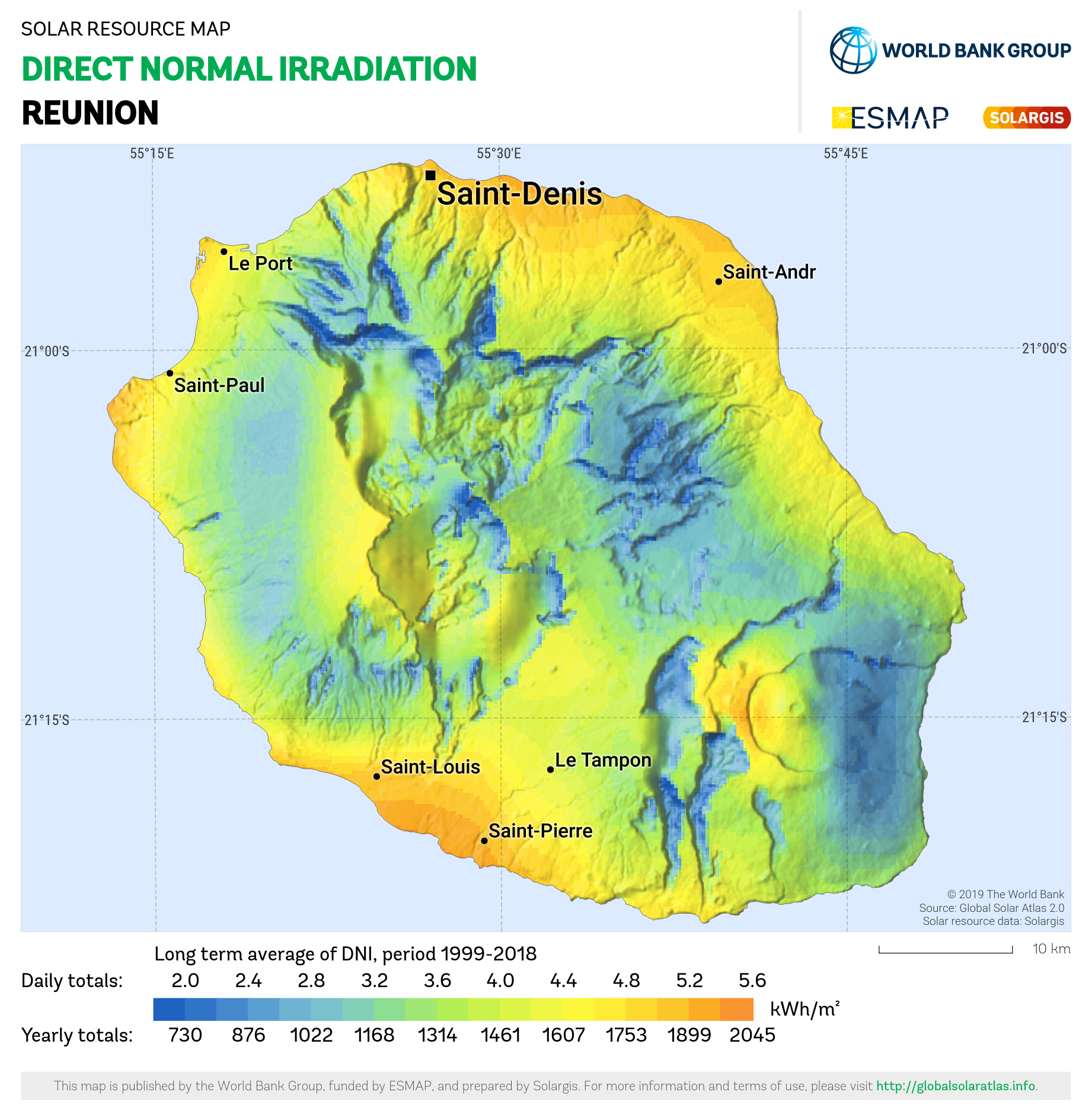 Solar resource maps of Reunion