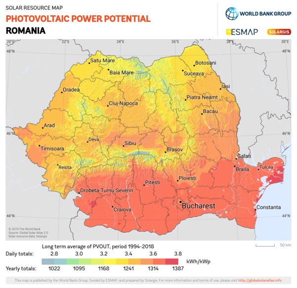 Solar resource maps of Romania