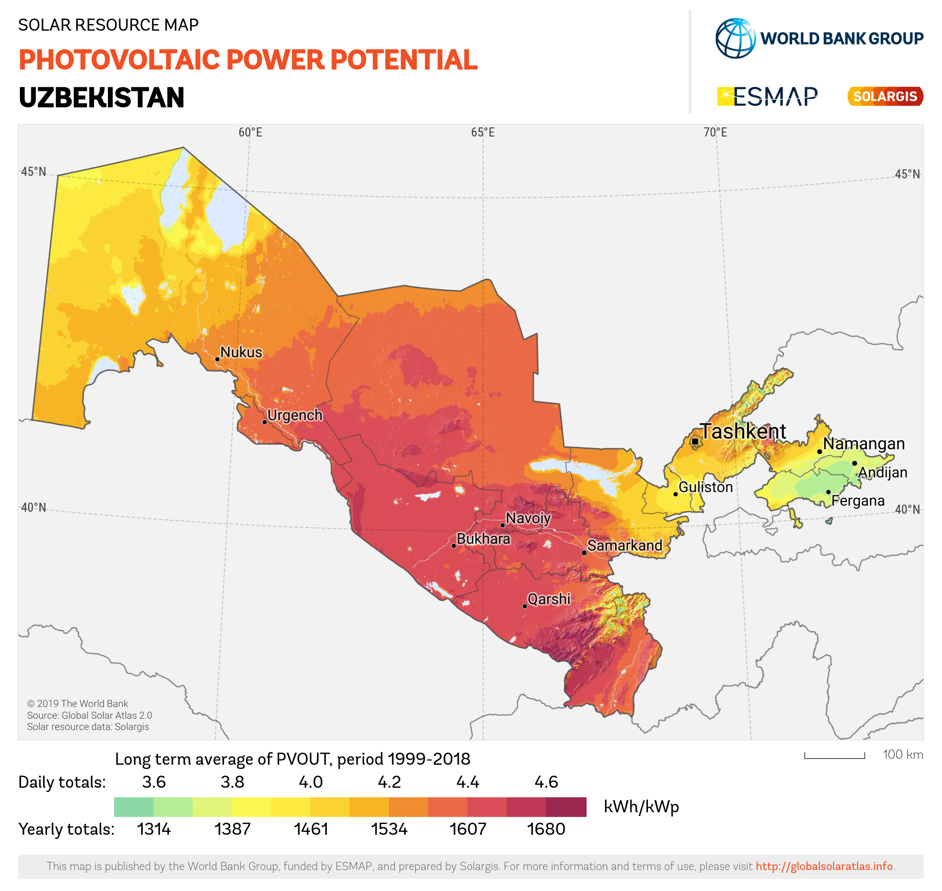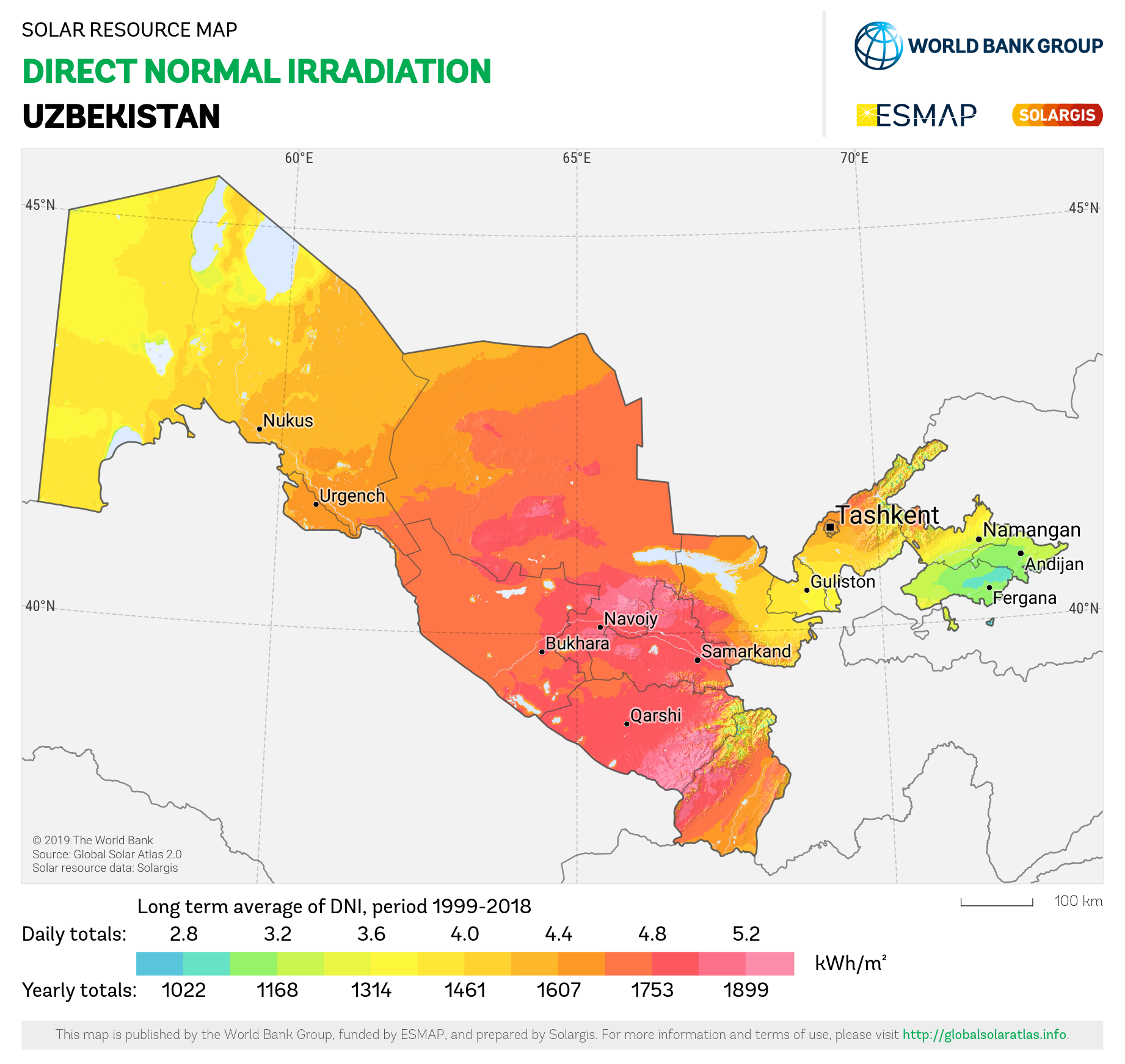 Solar resource maps of Uzbekistan