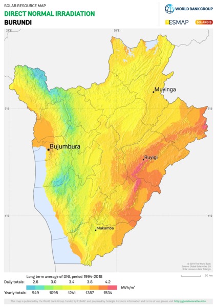 Solar resource maps of Burundi