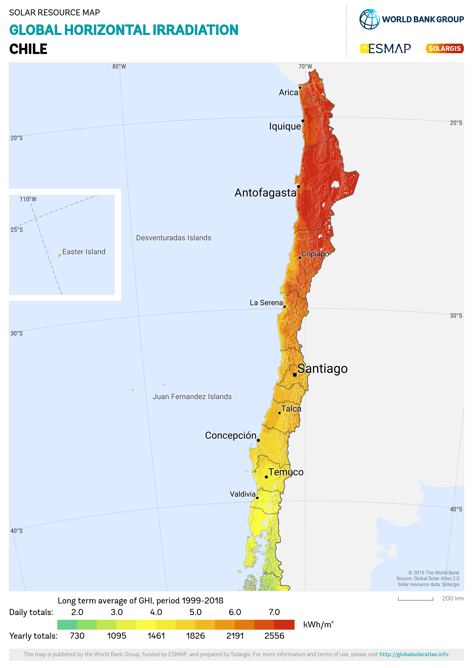 The map and data products on this page are licensed under the Creative Commons Attribution license (CC BY-SA 4.0). You are free to download, share, adapt, use the maps but you must credit the source on the appropriate place as follows: Solar resource map © 2021 Solargis. We also request you to provide a backlink to https://solargis.com website when appropriate.