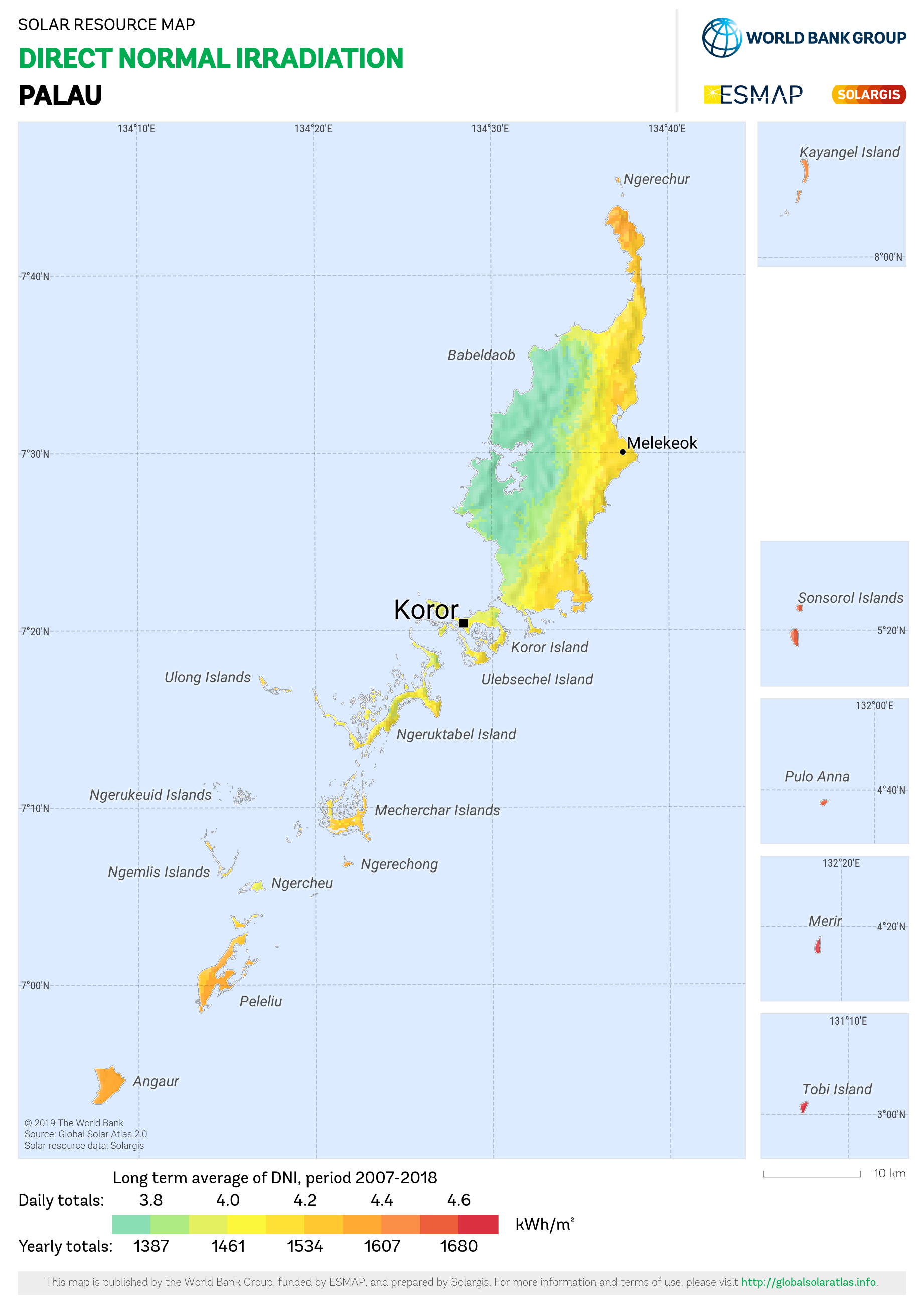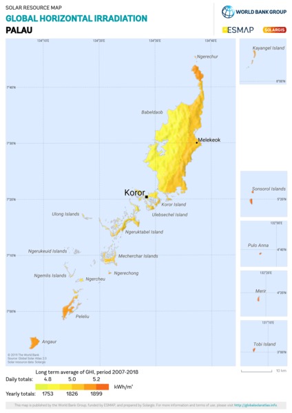 Solar resource maps of Palau