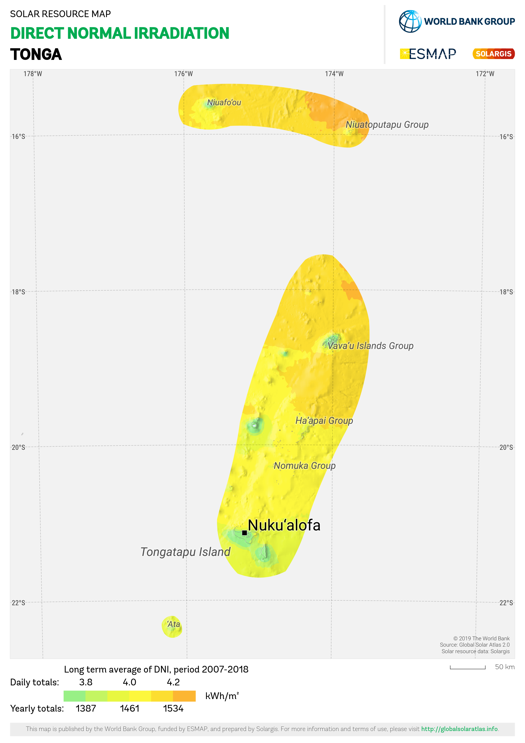 The map and data products on this page are licensed under the Creative Commons Attribution license (CC BY-SA 4.0). You are free to download, share, adapt, use the maps but you must credit the source on the appropriate place as follows: Solar resource map © 2021 Solargis. We also request you to provide a backlink to https://solargis.com website when appropriate.